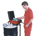 Can recycling system collects residual liquids and permits recycling of de-pressurized cans as non-hazardous scrap metal, not hazardous waste. Fits 2″ bung of any 30 or 55 gallon steel drum. Holds up to three cans, up to 10″ high, 2 1/2″ 3″ diameter.