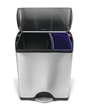 simplehuman Rectangular Step Recycler, Fingerprint-Proof Brushed Stainless Steel, 46-Liter /12-Gallon